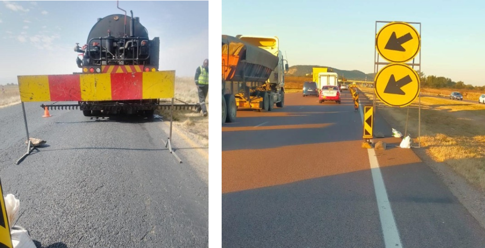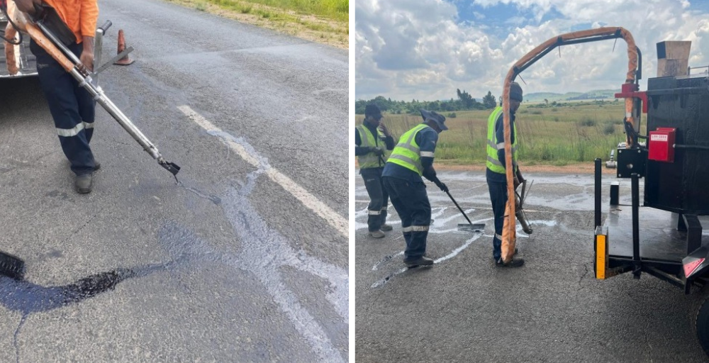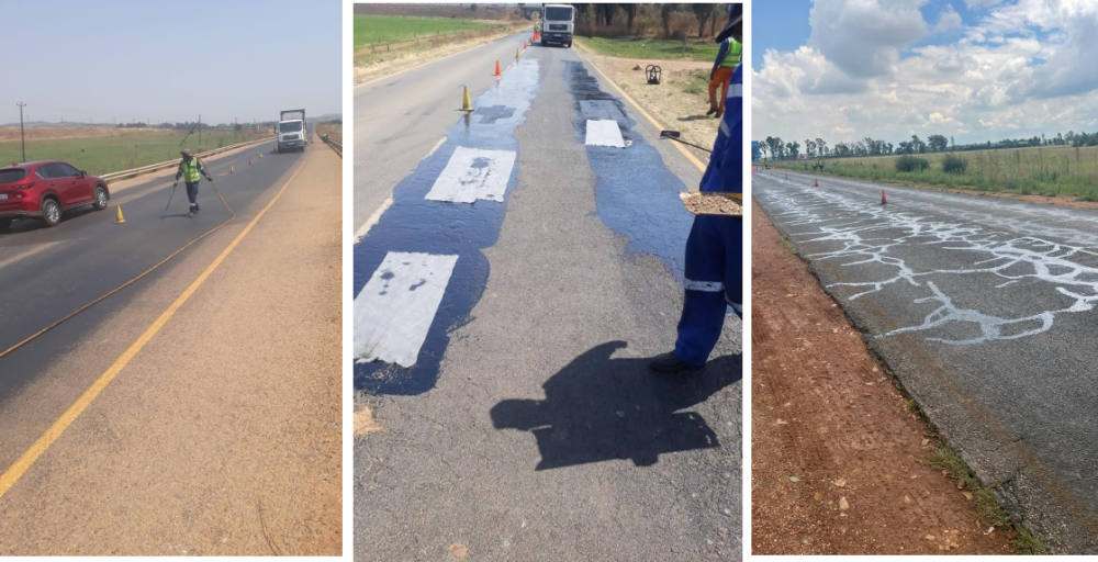 CRACK SEALING AND BITUMEN SPRAY ON THE ROAD WORK